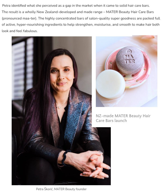 "MATER Beauty founder Petra Škorić understands the superhuman power of a good hair day. It was through her own dissatisfaction with trial and error using solid hair care bars that she decided to formulate her own."