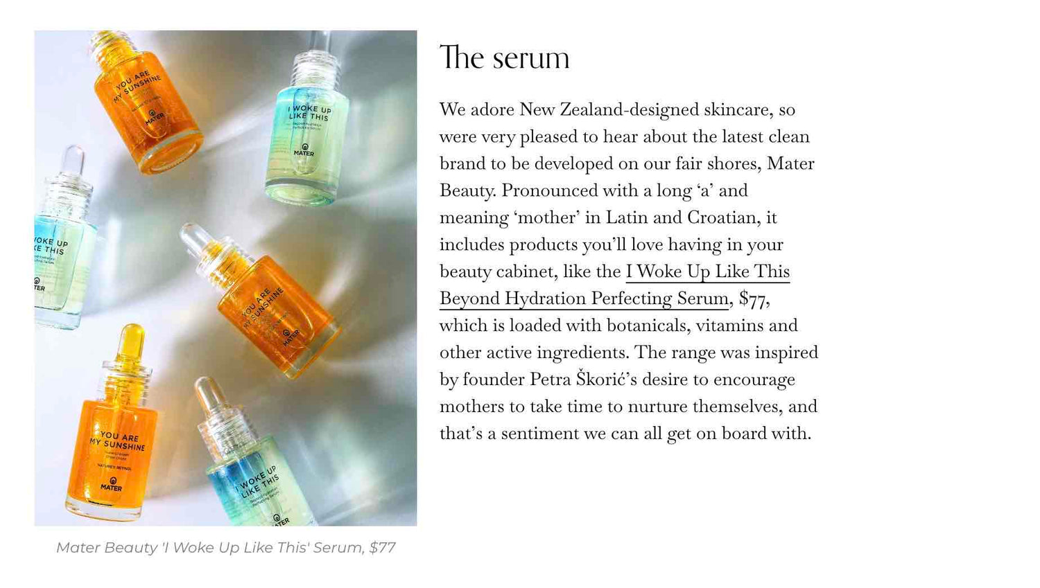 I WOKE UP LIKE THIS Beyond-hydration Perfecting Serum features in NZ House & Garden's magazine Beauty Edit, April 2023.