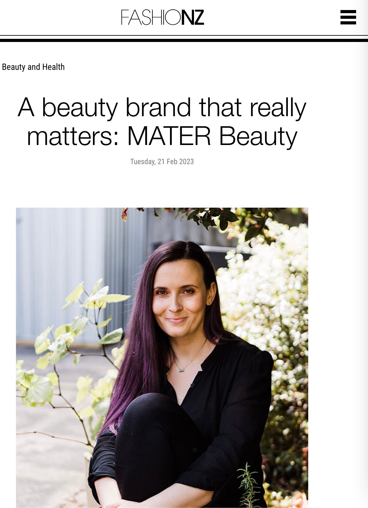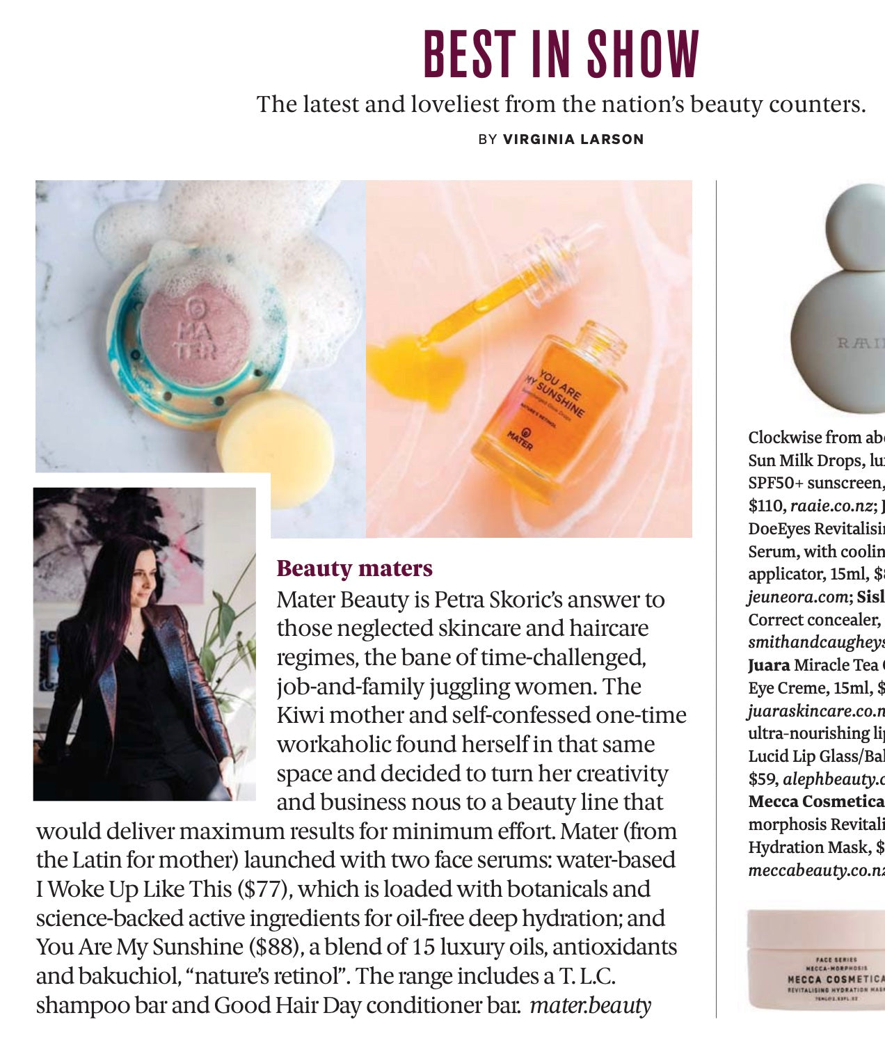 MATER Beauty features in Air New Zealand's inflight Kia Ora magazine's April 2023 issue.