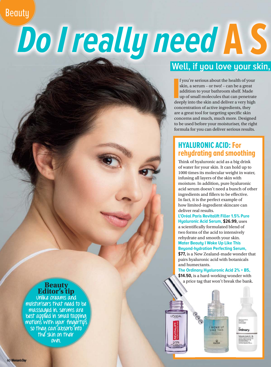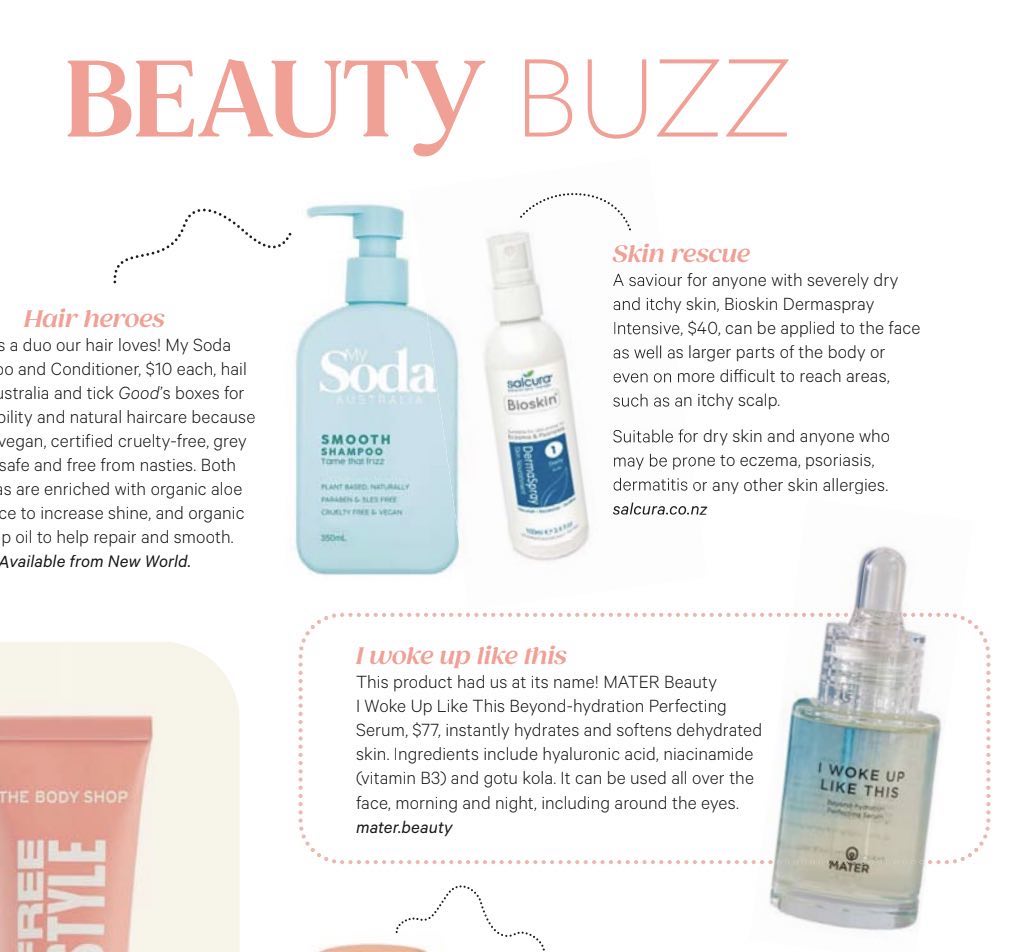 New Zealand's #1 Weekly Magazine featured I WOKE UP LIKE THIS Beyond-hydration Perfecting Serum. In addition to Hyaluronic Acid, this serum also includes a powerful blend of other actives to assist with: