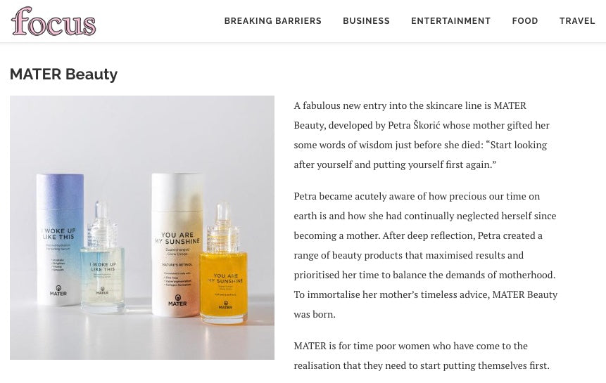 Mindfully crafted for all time challenged women that have come to the realisation that they need to start putting themselves first, MATER Beauty prioritises minimum effort for maximum results.