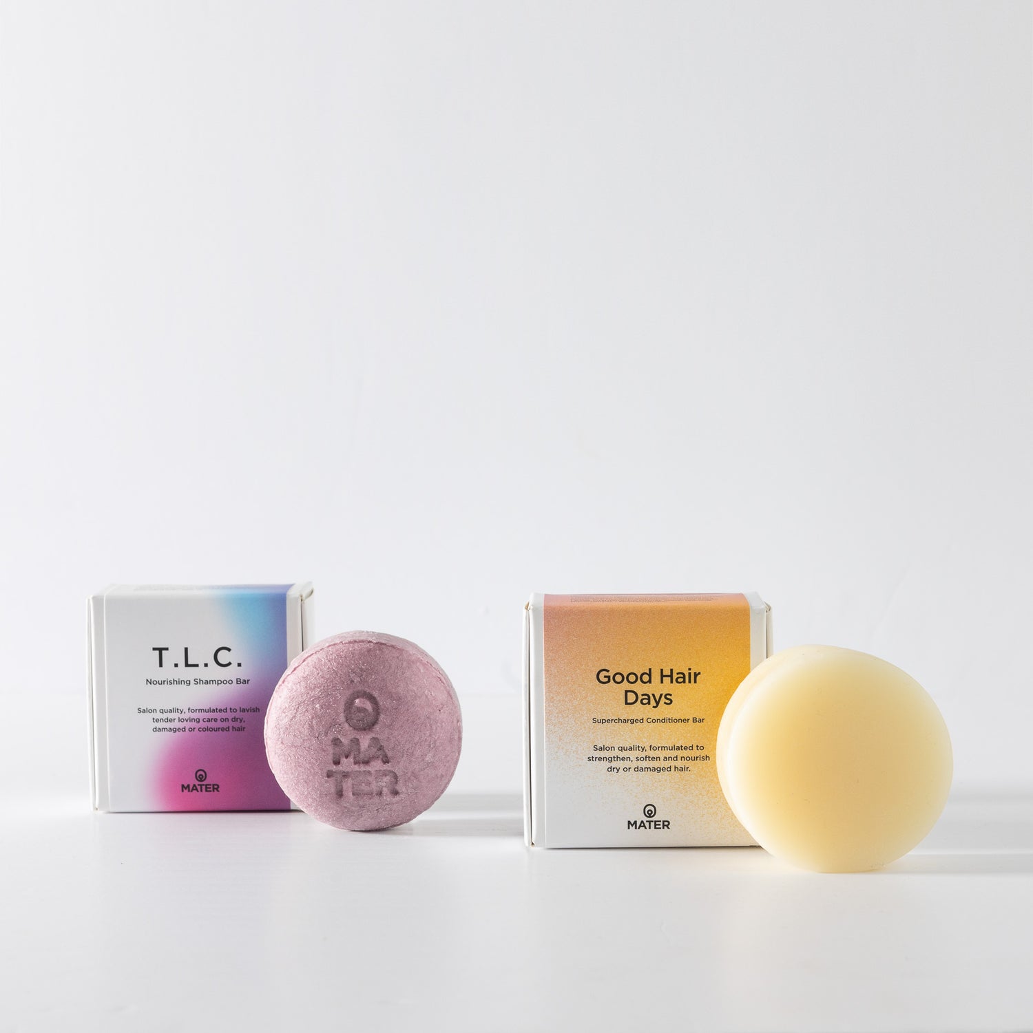 The MATER Beauty x Oka Pottery dishes are designed specifically to keep your T.L.C. Nourishing Shampoo Bar and Good Hair Days Supercharged Conditioner Bar drained, dry and longer-lasting.